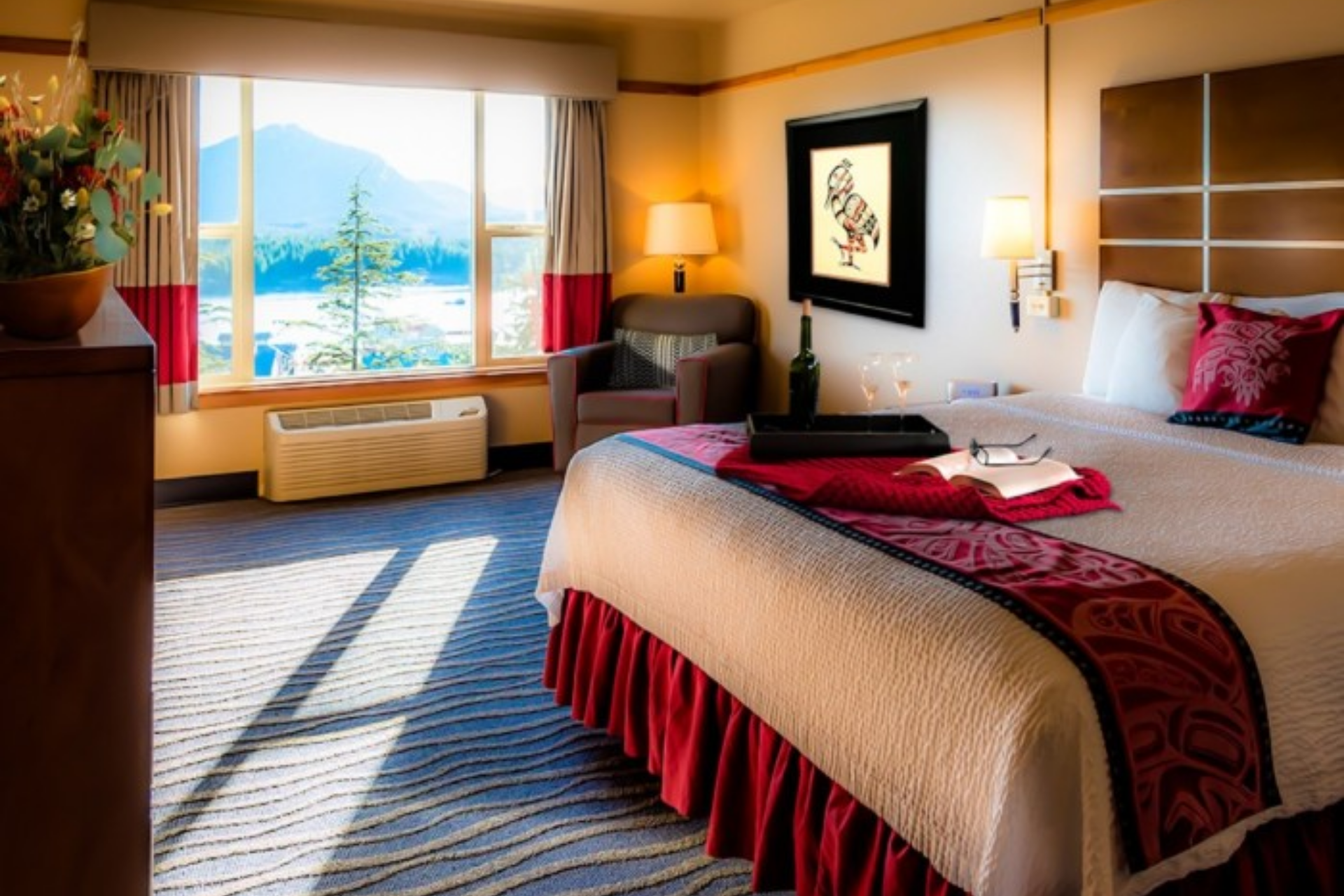 King Bed Non-Smoking. This room outside the main lodge. Amenities include high-speed wireless Internet access, work desk and chair, data port, alarm clock/radio, coffee maker, iron, ironing board, hairdryer, microwave, mini-fridge, and cable TV.